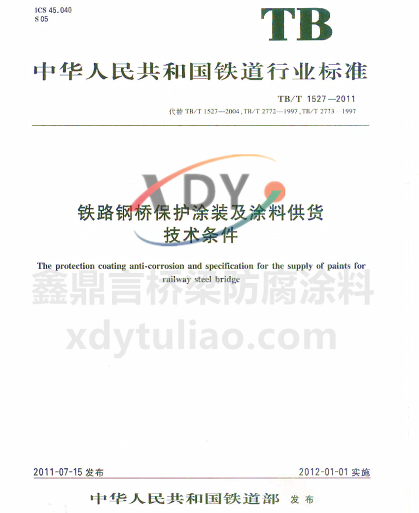 TB/T 1527-2011鐵路鋼橋保護涂裝及涂料供貨技術條件 華人民共和國鐵道行業標準 TB/T 1527-2011代替TB/T 1527-2004、TB/T 2772-1997、TB/T 2773-1997 鐵路鋼橋保護涂裝及涂料供貨技術條件 The protection coating anti-corrosion and specification for the supply of pa