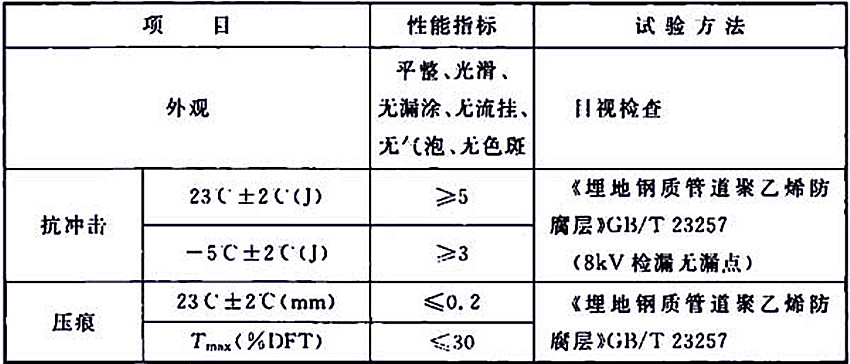 2 防腐層在常溫條件至少應放置7d,達到完全固化后方可進行性能測試。
