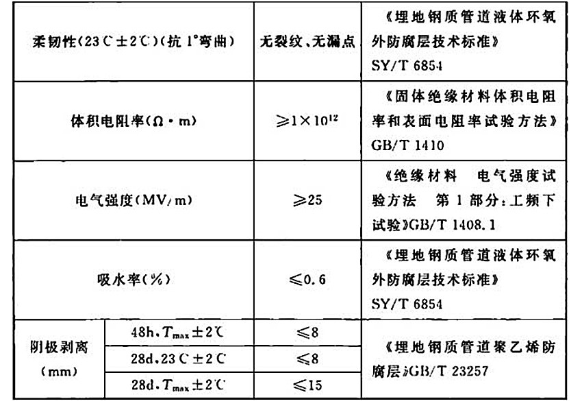 表2.2-1 液體環(huán)氧補口防腐層性能指標(biāo)(2A)