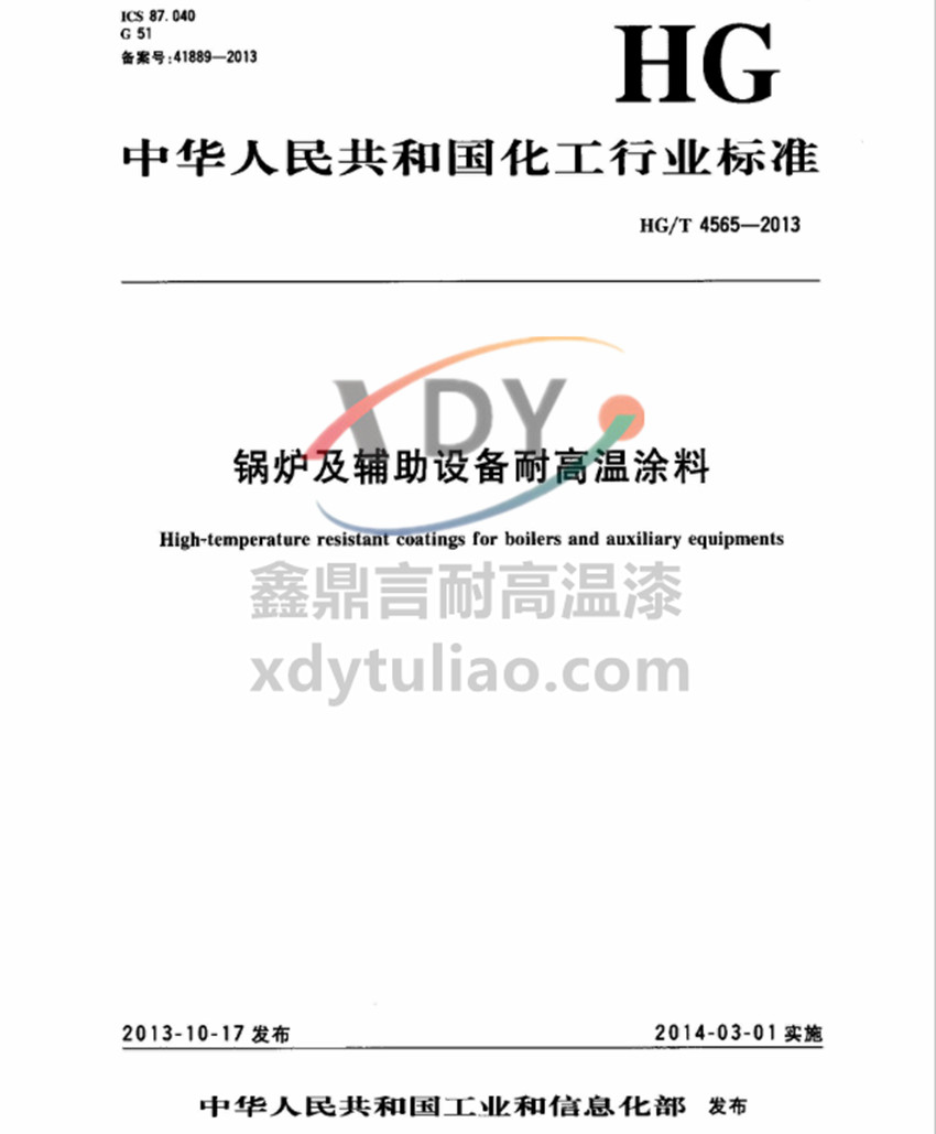 鍋爐及輔助設(shè)備耐高溫涂料標(biāo)準(zhǔn)HG/T4565-2013